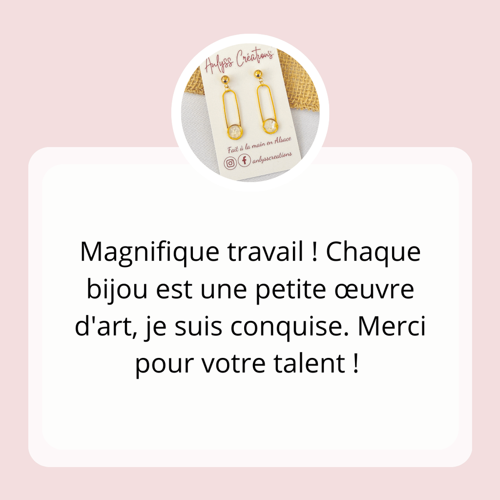 Les bijoux sont créés dans mon petit atelier proche de Strasbourg, c’est pourquoi le délai d’expédition est relativement rapide